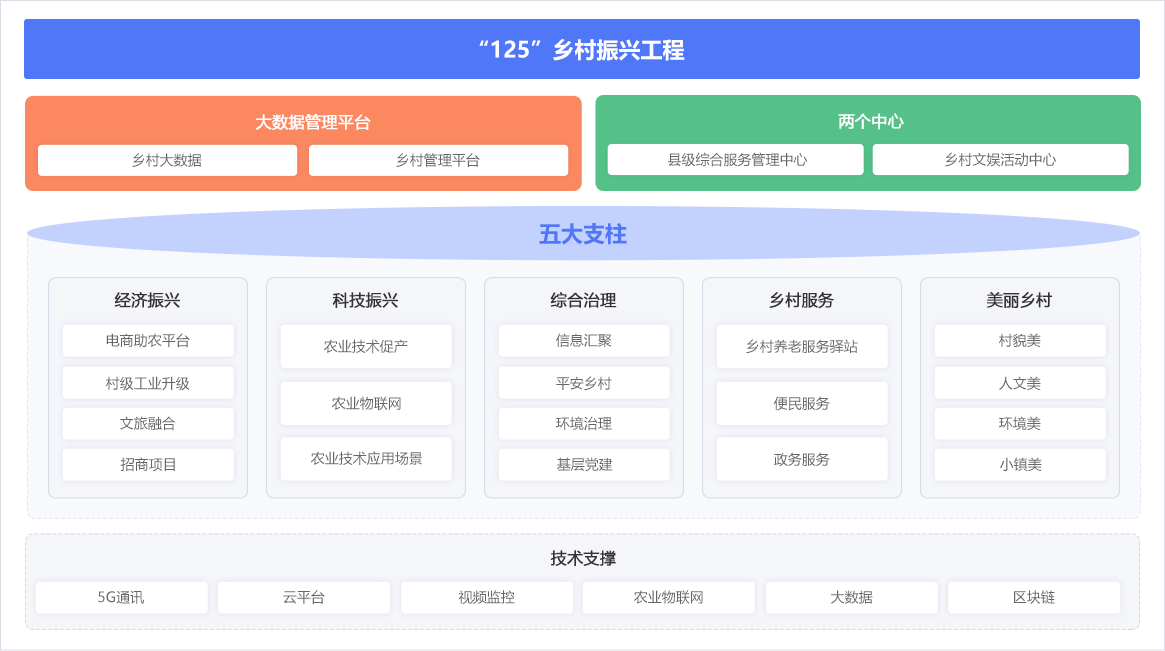 通過打造市(縣)、鄉鎮、村三級平臺體系,創新“1個平臺”(鄉村振興綜合服務平臺),“2個中心”(縣級綜合服務管理中心和鄉村綜合服務中心),“3項重點實施內容”(鄉村經濟、人居環境、綜合治理)的管理新模式,圍繞“鄉村經濟、科技振興、鄉村治理、民生服務、美麗鄉村”等方面,解決政府、企業、農民痛點,打造農業產業互聯網樣板。