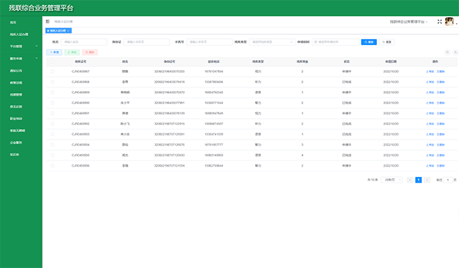通過搭建“省-市-區(縣)-街道-社區”五級管理體系,建設殘疾人檔案、機構、輔具、康復、就業、慈善、無障礙等方面的綜合業務管理平臺,滿足主管部門的業務協同、數據交換、部門溝通等的扎口管理需求。借助“助殘服務直通車“,配套5大類助殘智能終端,提供輔具租賃、居家安防、居家探訪、兒童康復等助殘服務,實現殘聯工作統籌整合、有序管理,提高基層人員工作效率,提升殘疾人幸福感。